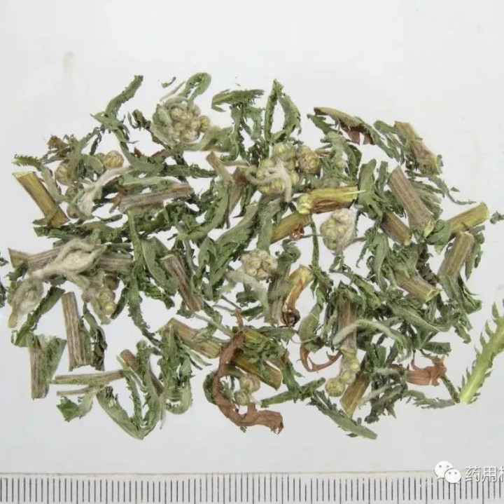 蓍草为菊科蓍属多年生草本植物,又名蓍、蜈蚣草、锯草、一支蒿等。蓍草的药用记载最早可追溯至《神农本草经》,被列为 “上品”,历代本草如《本草纲目》《千金方》等均对其功效有详细阐述。其药用部位为干燥地上部分,通常在夏季花盛开时采收,除去杂质,阴干或晒干后入药,饮片多为段状,茎、叶、花混合,气微香,味微苦,以完整、色绿、杂质少者为佳。